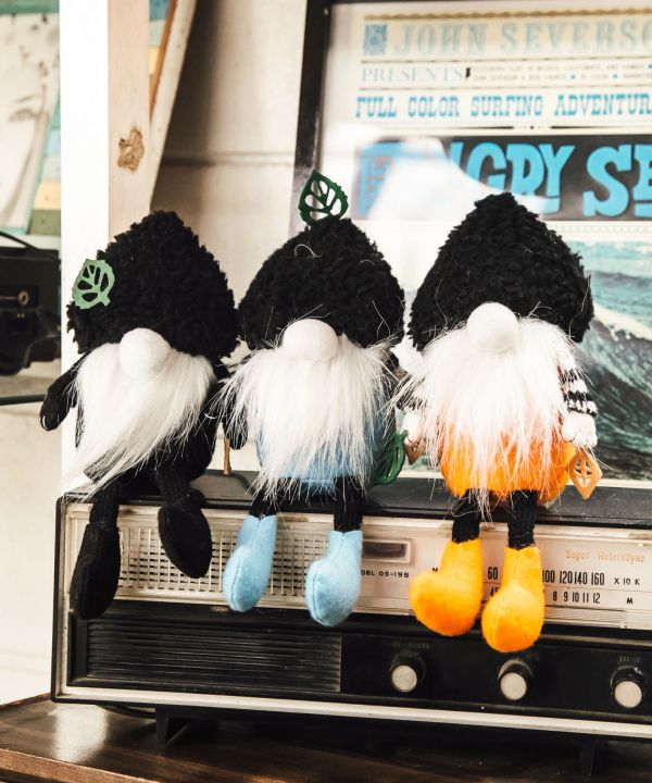 Tontaro the sauna fairy of Amina. Her ancestors were the fairies who guarded the saunas of Finland. Blue is the color of the Finnish flag, orange is the color of the midnight sun, and black is Tontaroro's own color that cannot be dyed in any way. If you display them side by side, Tontaroro will protect your home.