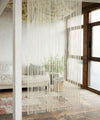 String noren with a beautiful swinging appearance. The curtain hooks can be threaded through so that it can be attached to curtain rails. It can be cut to fit the place where you want to install it without fraying. A light string type that lets the wind gently pass through and provides a good degree of blindness. It can be used in all seasons without feeling oppressive such as in kitchens, hallways, partitions, and entrance blindfolds.
