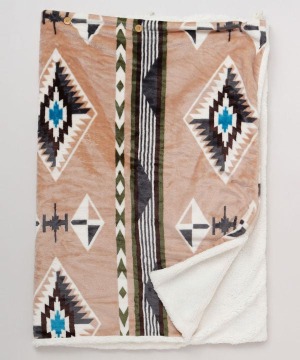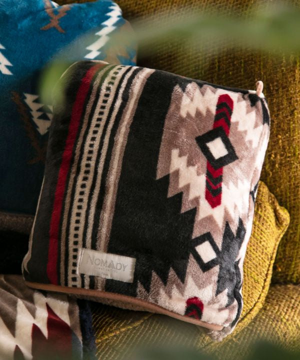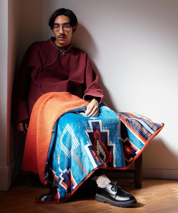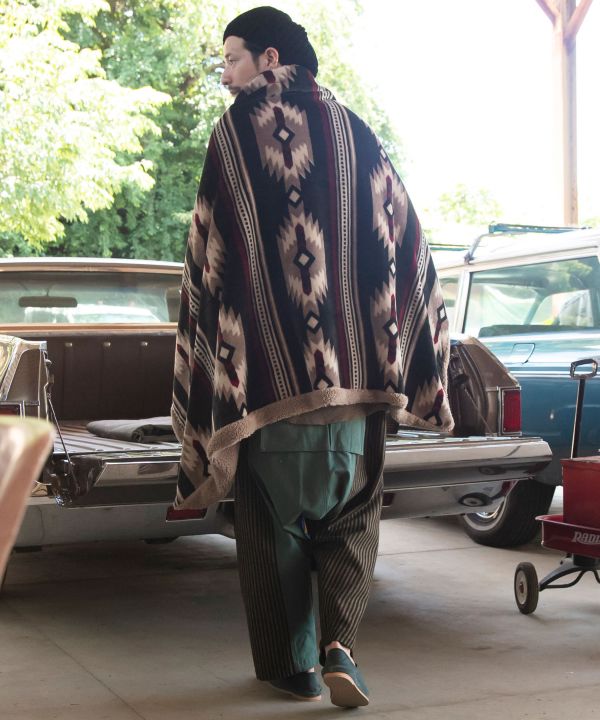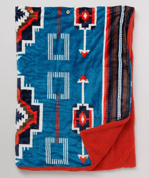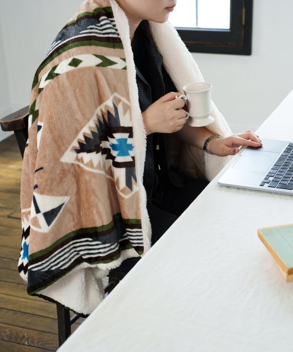 With buttons and loops this blanket can be wrapped around the waist or used as a shoulder blanket. It is packable and can be carried in a small package, and can also be used as a cushion. The warm natural color is inspired by the color of the earth and clouds of Sedona, and the turquoise blue, which is said to be a guardian stone for travelers, is newly introduced as a new pattern.