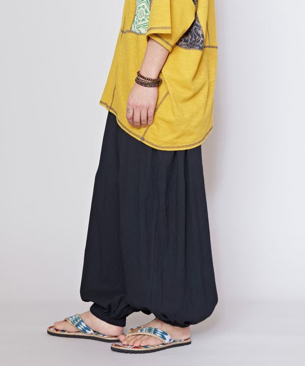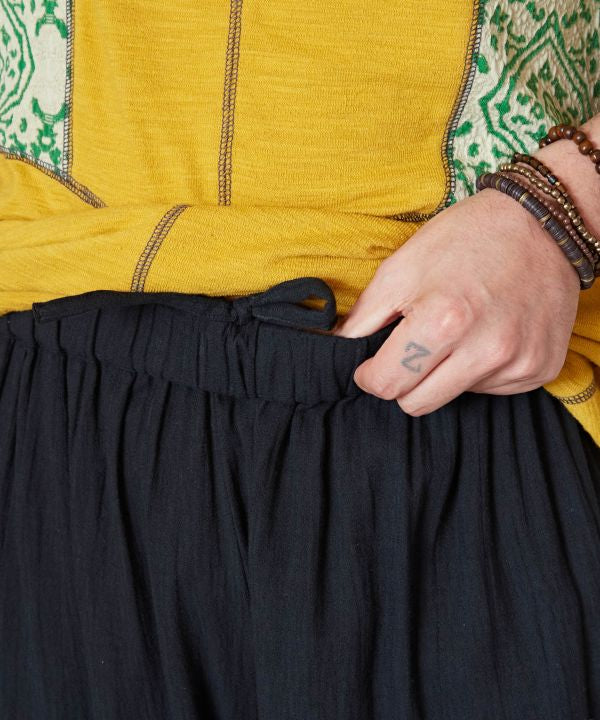 Cool relaxed men's pants in Indian cotton. The generous silhouette and elastic hem allow for length adjustment. A simple and versatile piece for any occasion.