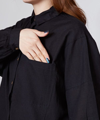 A basic, comfortable plain women's shirt. This piece can also be worn as a woven coat, making it useful in a variety of situations.