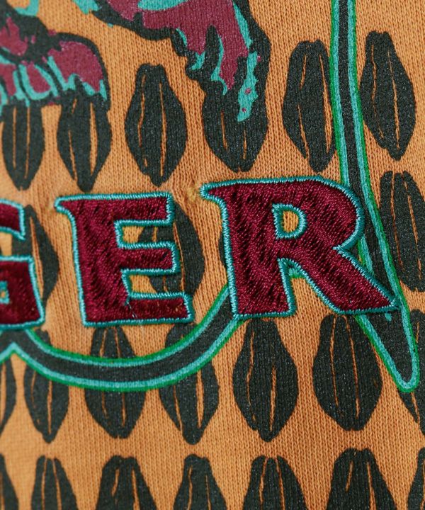 Unisex sweatshirt made of a brushed fabric with an old-fashioned look and feel. The length makes it easy to match with bottoms and the retro-like textile design and one-point embroidery on the sleeves are appealing. This retro design series is based on the theme of civilization's opening to the world, and interweaves foreign and Japanese cultures.