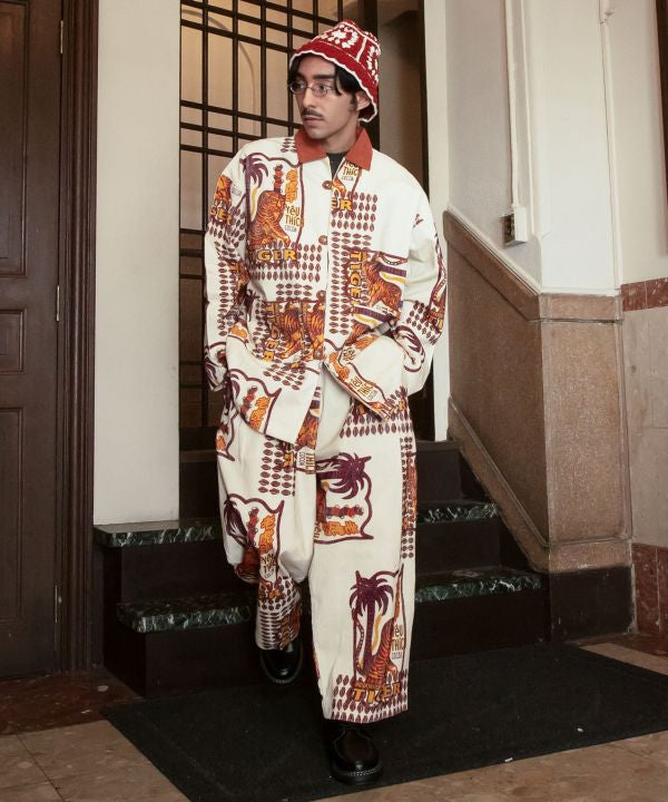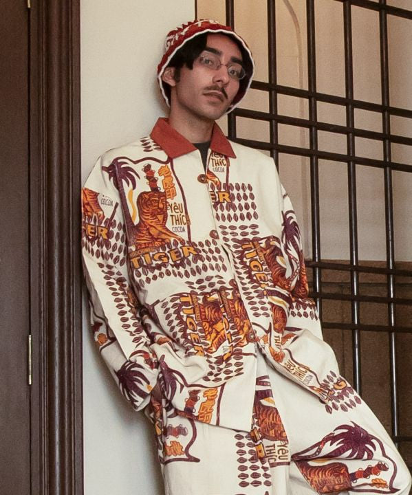 This men's shirt is made of a warm, thick corduroy fabric that can also be used as a jacket. The retro-oriental textile design, based on the theme of civilization and civilization-enlightenment, interweaves foreign and Japanese cultures.