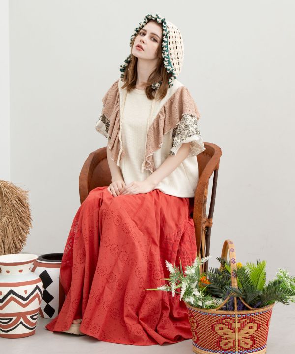 This hand-knit cap with a drawstring features a versatile design that can be styled like a hood. Its relaxed fit offers a laid-back feel, making it perfect for hippie or bohemian outfits.