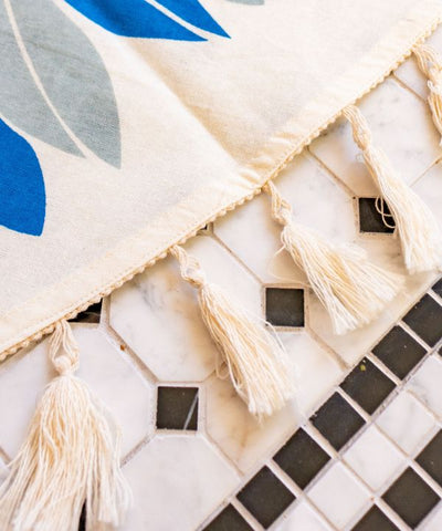 Round decorative fabric is inspired by the nature of Morocco and expressed in mandalas.