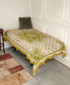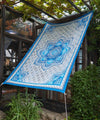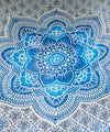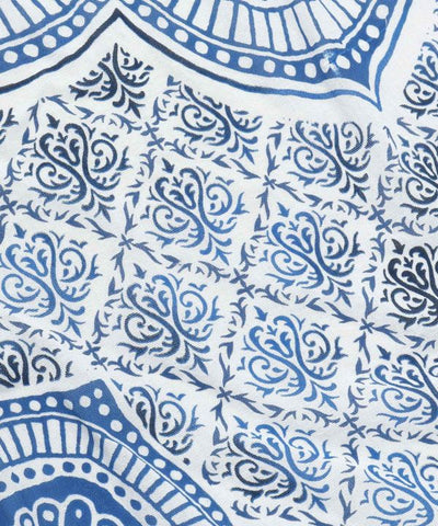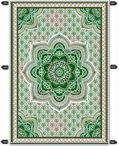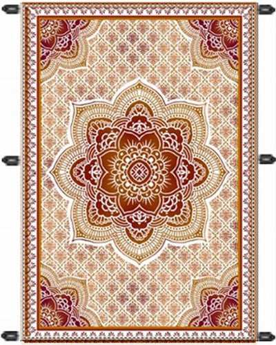 A multi-colored mandala in vivid colors attracts the eye. The pattern of fine floral patterns floating in gradation around the mandala is inspired by architectural motifs often seen in Indian temples and lotus floating on the surface of water. With six loops on the back it can be used as a bedspread, tarp cloth, and other multi-purpose items.