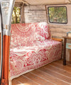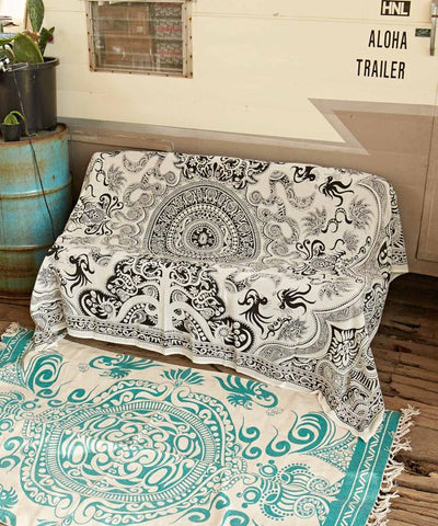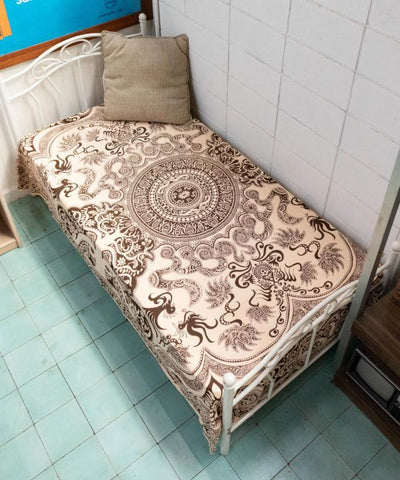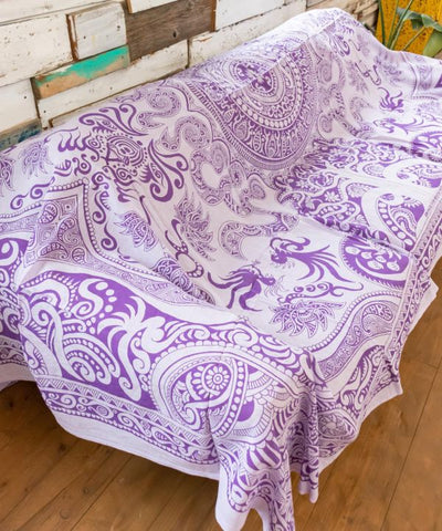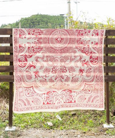 Trees undulate birds of paradise dance, and lotuses float. The large semi-double size can be used not only as a bedspread but also as a partition, sofa cover, etc. AMINA's original tribal pattern tunes your mind to nature.