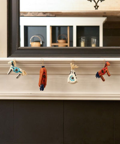 This ornament is inspired by items of Native American life that were once active on the Great Plains. Corn is more than just food; it is a symbol of life itself and prayer itself. The felt material makes it a great interior decoration.