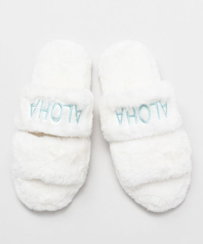 Cute fuzzy fur slippers with ALOHA embroidery. The comfortable fur material is soft to the touch and comfortable to wear. The non-slip soles make them safe and secure. It will make your feet bright and gorgeous.