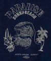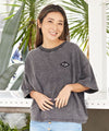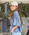 This denim-like cut and sewn T-shirt is easy to coordinate with any outfit. The washed finish makes the fabric soft and comfortable to wear. The back of the T-shirt is embroidered with a surf culture design.