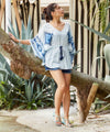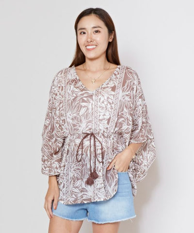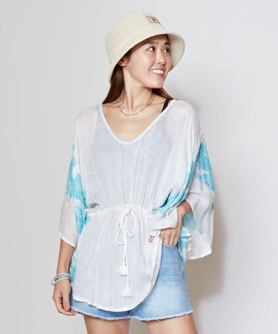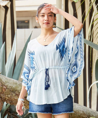 UV protection treated poncho top that protects you from the sun. The tasseled ties at the waist allow you to change the silhouette. Match it with a camisole or swimsuit.
