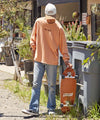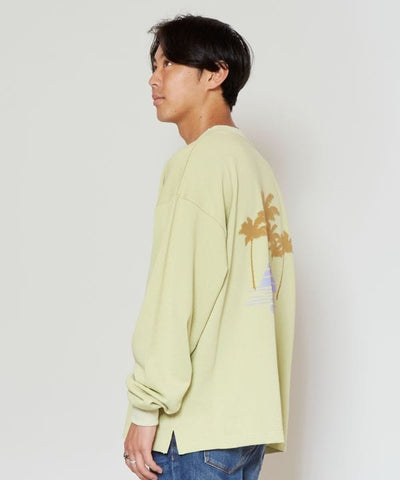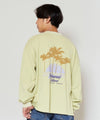 This T-shirt features a back print with an image of a Hawaiian scene. The logo on the front chest is an accent. This T-shirt is suitable for all genders.
