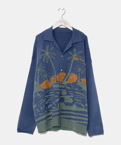A knit shirt with a subdued texture inspired by an aloha pattern. This design is perfect for those who love vintage vintage clothing. An item that expands the range of your fashionable style.
