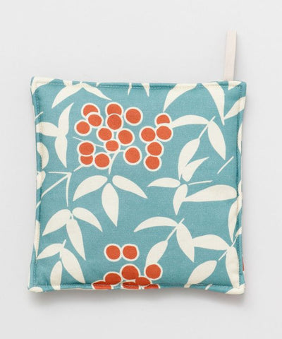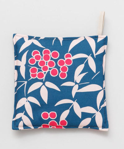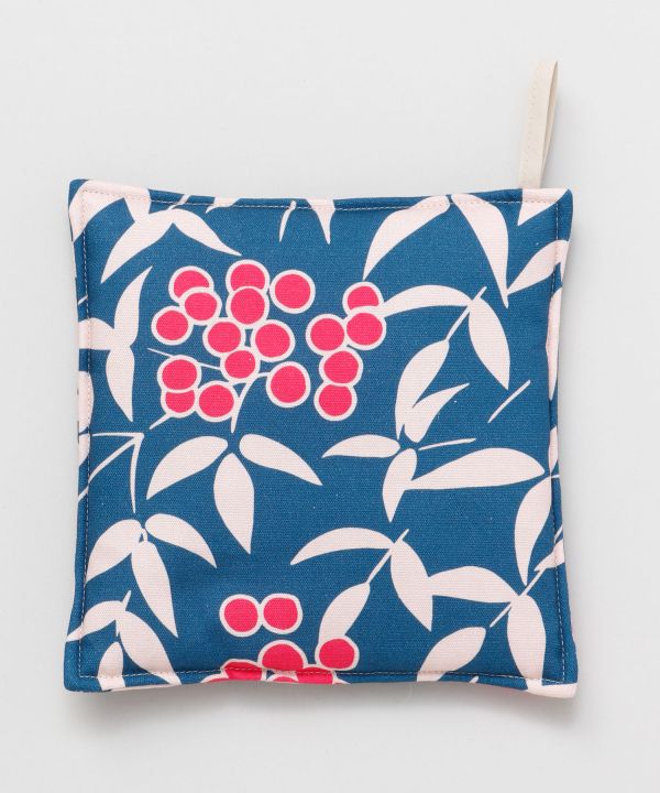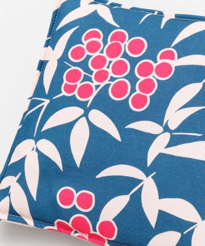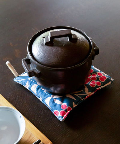 Thick and durable cotton pot stand. Its thick wall thickness protects your valuable furniture from heat. The "Nanten" pattern which is associated with good fortune, is designed in a rich and colorful manner. It will add color to your dining table.