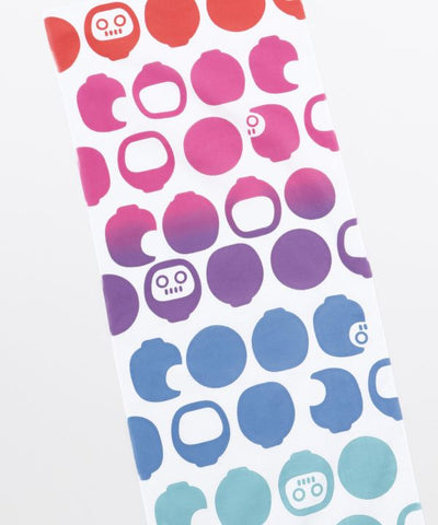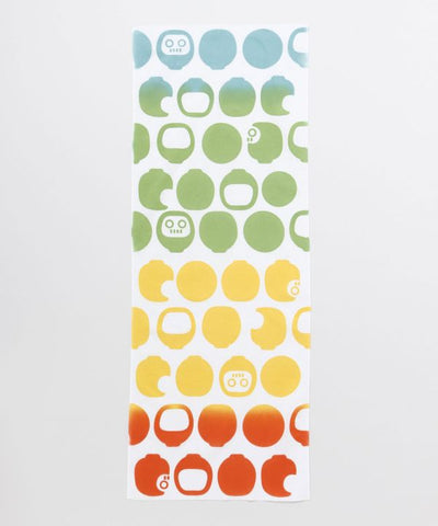 A Tenugui towel with a pop design of Daruma doll silhouettes. The gradation of colors is beautiful and the overall pattern is suitable for both decorating and wearing. It is recommended for use as an interior decoration, as a lunch box wrapper, or as wrapping.