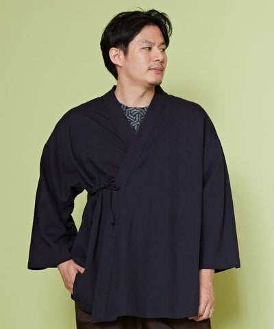 A simple haori made of comfortable cotton. We recommend tying the strings and wearing it as a top like Samue Samue. Because of its plain design, it can be easily added to your everyday attire to create a Japanese atmosphere. It can be worn by all genders.