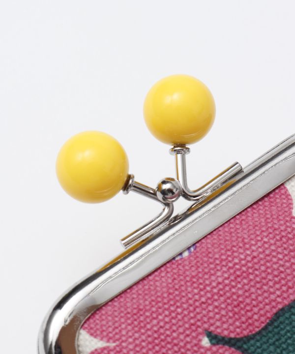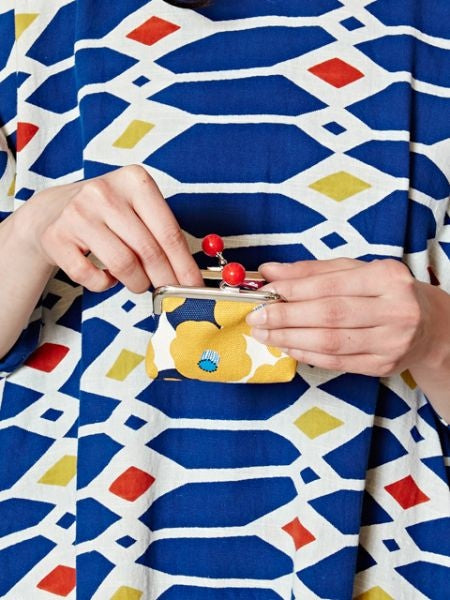 The bold flower Hanagoromo series was designed with an image of a Kimono pattern. A small type of Gama-guchi clasp that is perfect for holding coins. It can also be used as a pill pouch.