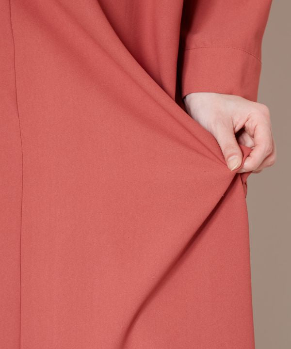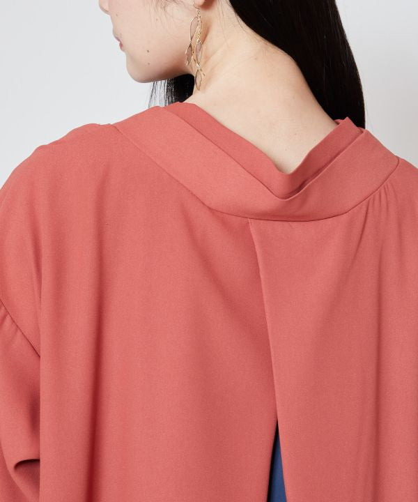 This is a one-piece dress with a characteristic hakkake, a single-piece flower that can be glimpsed when walking. The flower motifs are Naniwa Ibara (Cherokee rose), Renge Tsutsuji (Japanese Azalea), and Gubijinso (Field poppy). This long dress is made of polyester and has a loose silhouette. The design brings out the warm atmosphere of woodblock prints.