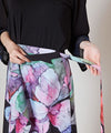 This skirt features a blotched design like a watercolor painting. The wrap-around skirt shape allows it to be worn size-less and gives the impression of a kimono skirt simply by tying it. The wrinkle-resistant material makes it a light and comfortable piece of clothing.