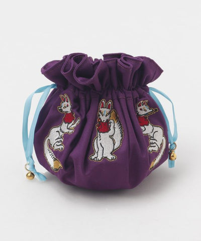 KAYA x Nakamura Kyoko collaboration project. A drawstring pouch with cute-looking animals expressed in pop colors. The size is convenient for carrying a cell phone, wallet, etc. The string has a small bell that rings cutely every time you walk. A small bell is attached to the string, which rings cutely every time you walk.