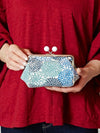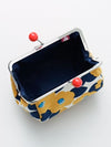 The bold flower Hanagoromo series was designed with an image of a Kimono pattern. The long, horizontal Gama-guchi clasp can be used as a replacement for a cosmetic or pencil box. <