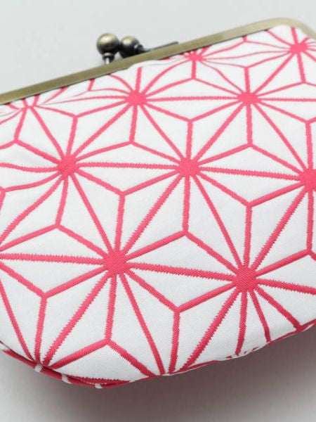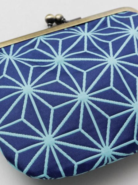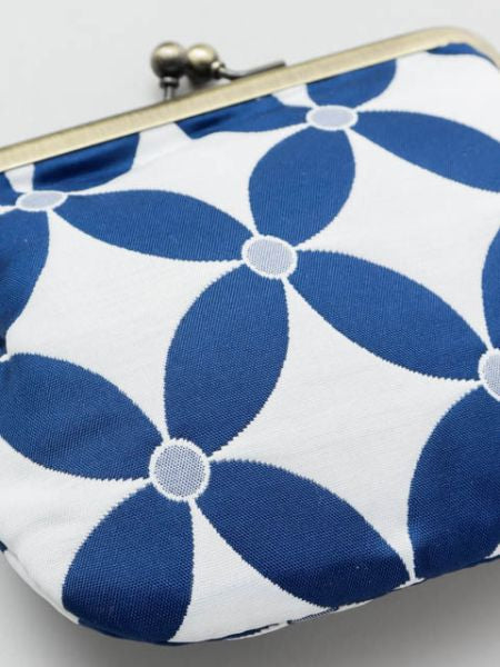 The "Fukure-ori" fabric a three-dimensional weave with colors reversed on the front and back surfaces, is used. This elegant wallet is a redesign of a traditional Japanese Komon pattern. It is a parent-child type Gamaguchi that can separate bills and coins with a clasp inside. <
