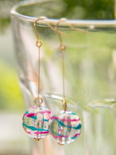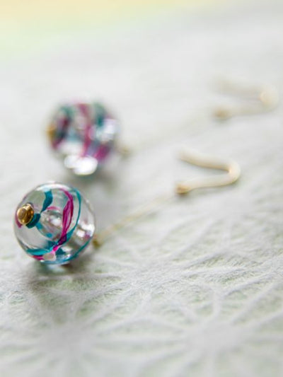 These water balloon earrings look like the real thing. Each of the hand-drawn lines has a different expression. The transparent and cool design can be worn with Yukata.