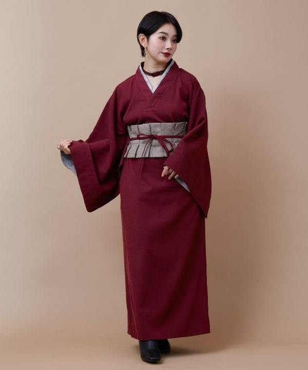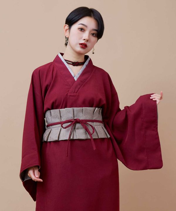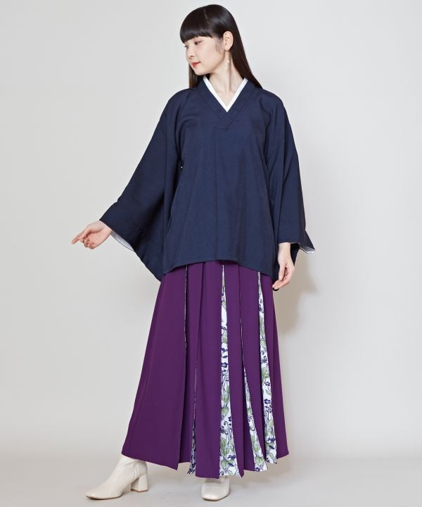 This impressive top features jacquard fabric around the collar and cuffs. By combining it with a skirt from the same series you can easily enjoy a kimono-like styling. The jacquard fabric has a flowing water motif pattern, giving it an elegant and gorgeous impression. Recommended for both special occasions and everyday wear.