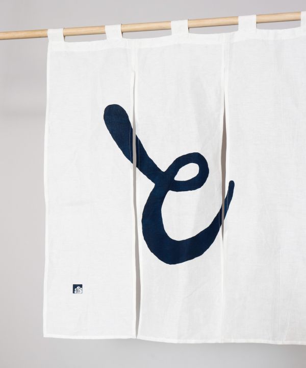 The Japanese-derived design gives the room a Japanese appearance. The Hiragana "と-To" is for a new door "To" for the role of a partition of space called noren. Also as a conjunction, it is meant to bring good luck. The auspicious "shimenawa" is a rope and represents the place of God. It creates a modern atmosphere when displayed on a Shinto altar, in an entryway, or in an alcove as a charm against evil.