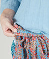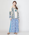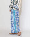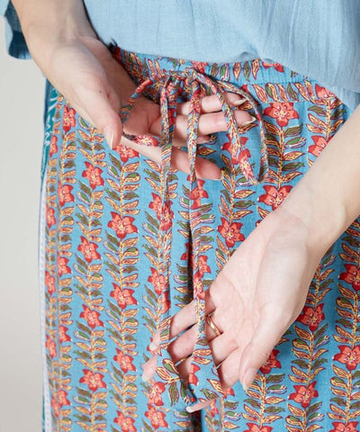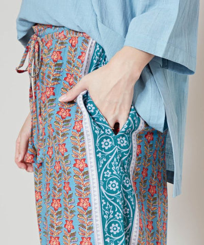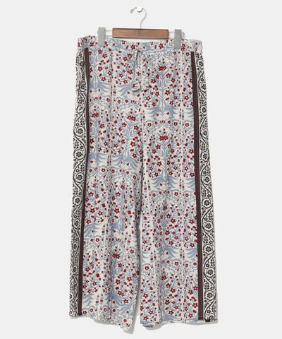 These women's pants have a unique pattern switch. The volume that creates a gorgeous silhouette and the warm floral pattern in a block print style are attractive.