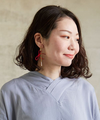 There are many kinds of connections that we want to cherish because we cannot see them with our eyes. The "Enishi" series incorporates these feelings into a red thread. These lovely earrings have a red thread that swings around your ear, connecting you to the world. With the power of the red color meaning "protection against misfortune," we recommend these earrings as a gift to your loved ones as a good-luck charm.