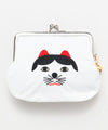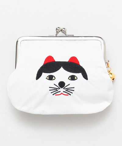 A small Gamaguchi purse with a Manekineko (beckoning cat), a lucky charm that invites good fortune. The bell charm, an essential part of the beckoning cat, is also adorable. The double clasp, which also has another opening inside, can hold bills, coins, medicines, and other small items. It is an excellent way to store small items separately.
