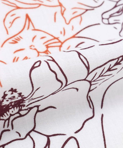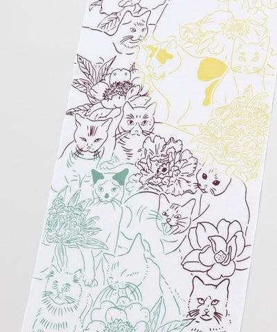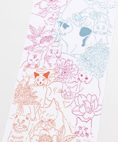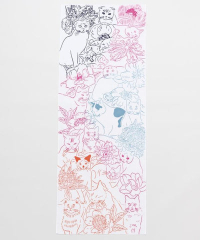 A Tenugui towel studded with various kinds of cats and flowers. A perfect piece for your room interior. Tenugui is quick-drying and folds up small making it easy to carry around. It is useful both at home and outside.