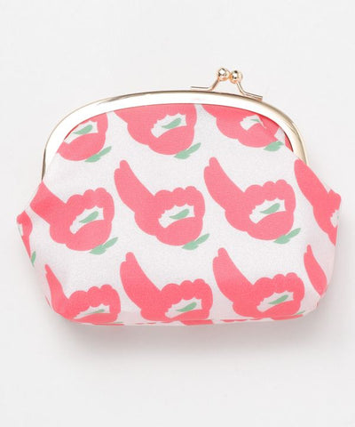 Inspired by the floral patterns on Kokeshi Dolls, a traditional Japanese craft. With a gusset, it can hold cosmetics and other small items. The cute flower pattern tickles the heart. The vinyl material can be wiped clean with a little water.