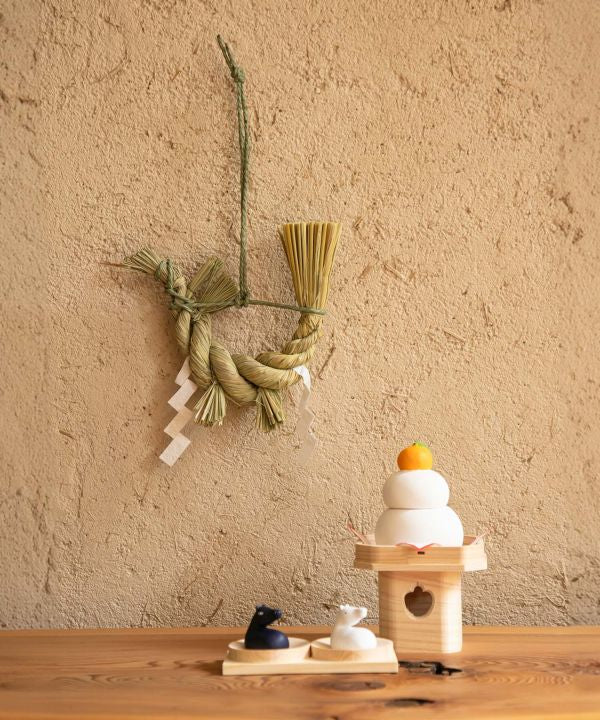 This zodiac sign Shimenawa decoration is based on the image of the year 2026 the year of the horse. It is said that decorating with a picture of the year and an object of the year will bring you a year of peace and happiness.
