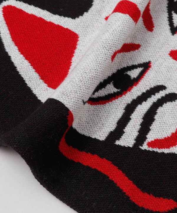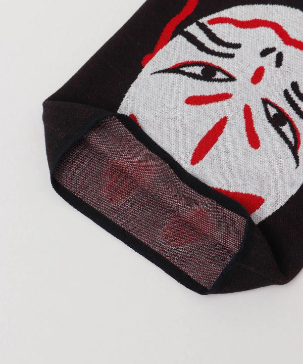 This haramaki belly warmer has a bold design of a fox mask. The expression changes from the back to the front. This thick belly roll is made in Japan and has elasticity to keep you warm.