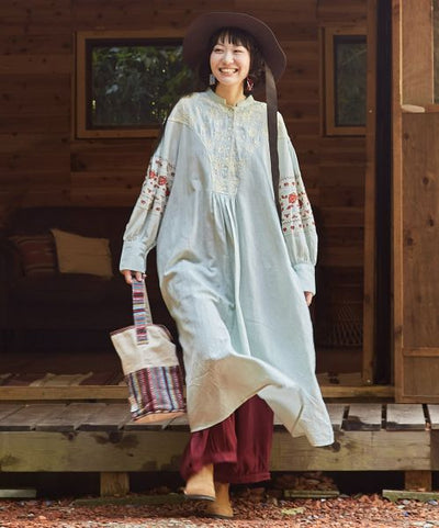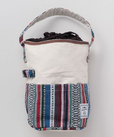 This bucket-shaped tote features a traditional Nepalese weave fabric. The village leather used at points adds to the impression. The rounded bottom and ample gussets allow for a lantern to fit inside. It is large enough to hold a lantern making it useful for camping as well. The inside is like a drawstring to protect your belongings. It has an inside pocket. Pahar means "mountain" in Nepali. It is a dreamy series that seems to exist together with the nature of the Himalayas, the highest mountain in the world.