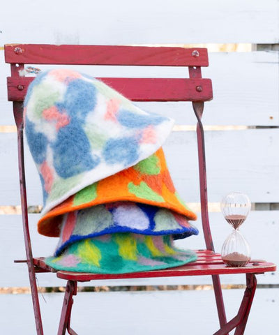 This series was designed around the theme of Tonttu a Finnish fairy who protects sauna huts. This hat protects your head from the heat in the sauna. The bold colors allow you to let your individuality loose, and the TonttuSAUNA logo makes a point. It is also useful for avoiding the sun and boosting your mood at festivals, camps, and other outdoor activities.