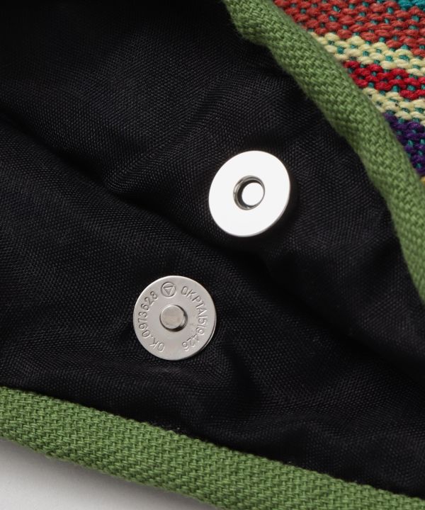 A popular tote bag made of Nepalese hand-woven border fabric. The opening has a magnetic button. The size is just right for your daily life. Please enjoy the texture of the woven fabric with the breath of the craftsman.
