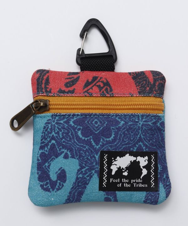This purse is decorated with traditional patterns from around the world. The zipper opens to a two-layer divider, which can also be used as a small coin purse. It also has a pocket on the outside, just enough to hold keys. The design is inspired by the patterns of wood block printing, an Indian printing technique.