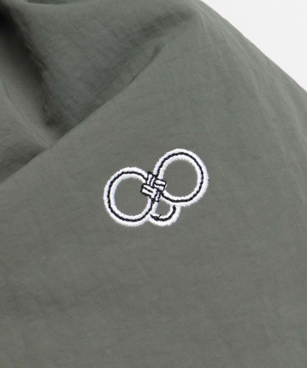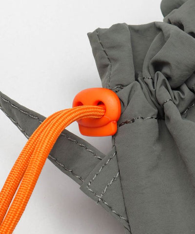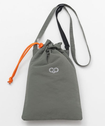 This shoulder bag features an embroidered design of the "Kano-musubi" knot which is used in Japanese good luck charms. The "Kano-musubi" knot has the meaning of protecting one's belongings. The solid, thick polyester material allows you to carry a smartphone and a long wallet. The length of the shoulder strap can be adjusted. With an inside pocket.