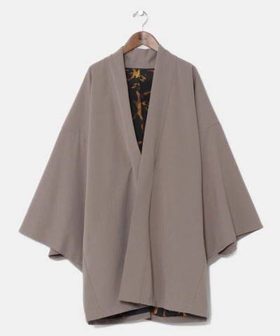 Kimono-style haori with an Ura-masari design using a scale pattern on the lining that is meant to ward off evil. Its medium-length can be worn by all genders. It incorporates elements of straight cutting, which is a characteristic of Japanese sewing, to create a Kaya-like casual kimono style. The design is based on the "Ura-masari" motif, in which a more luxurious lining than the outer fabric is inserted.