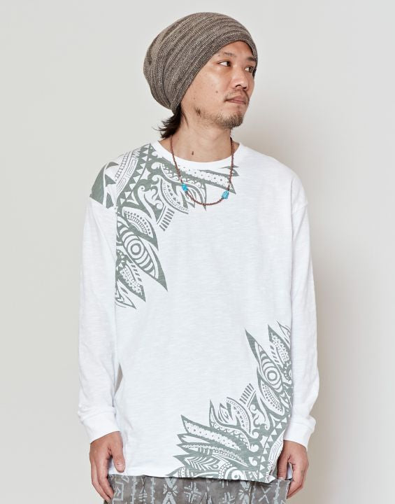 Feel the great outdoors on your feet. Cover socks with one-pointed embroidery of Native American symbols. The coloring is inspired by the gradation of the setting sun shining on the desert. Wear your own colors and pay attention to what you can't see.