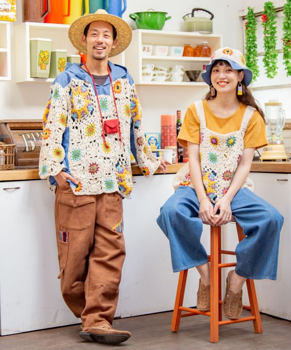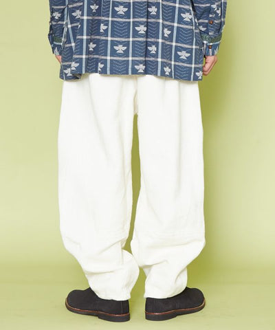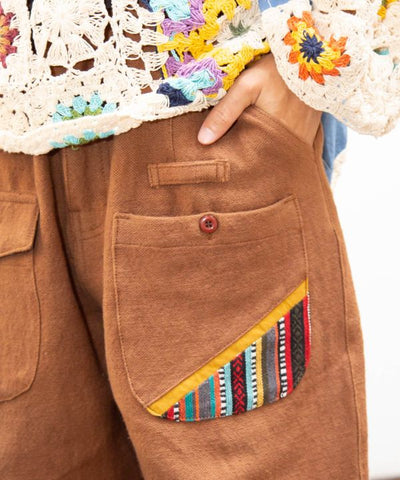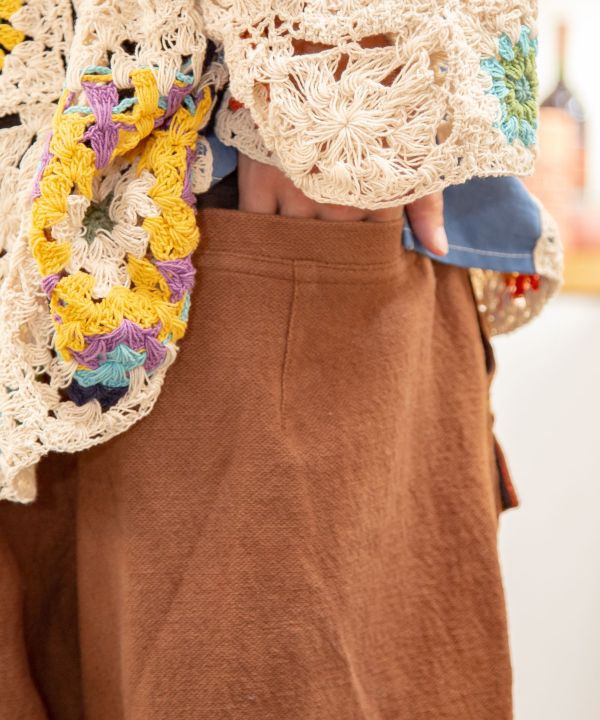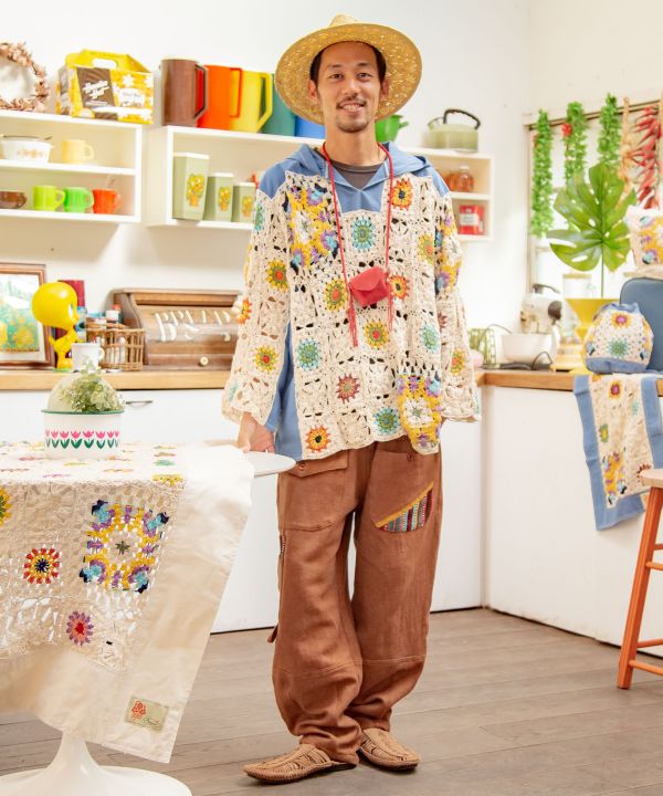 Fisherman themed men's pants inspired by Nepal. This piece is made of Nepal's characteristic cotton and jacquard fabrics, with attention to detail. The highly practical pocket design is also recommended for camping scenes. The waist can be adjusted with ties. The best part is the combination of the switching design, color scheme, and jacquard.