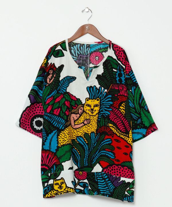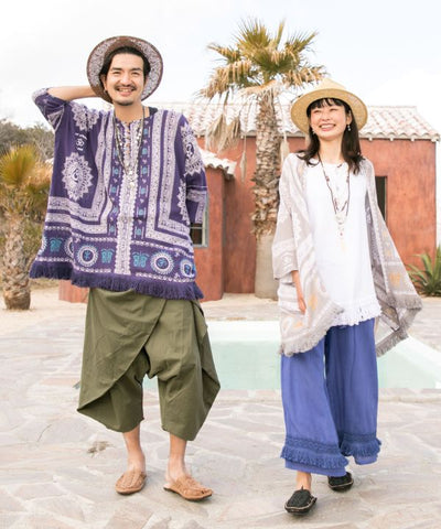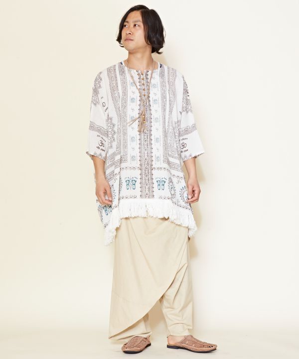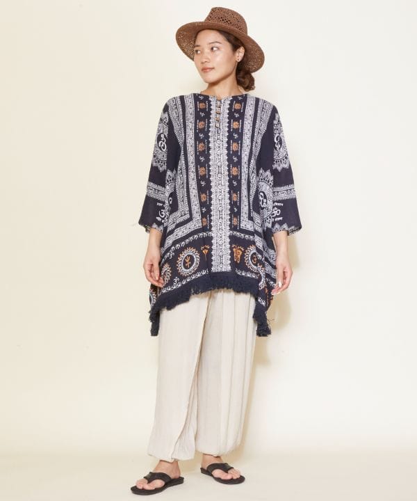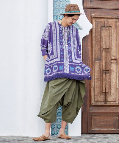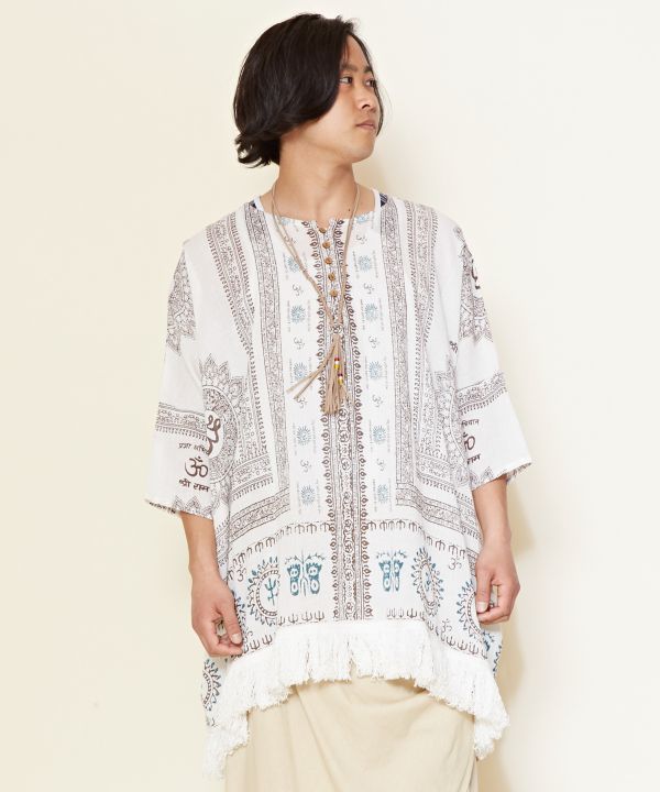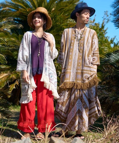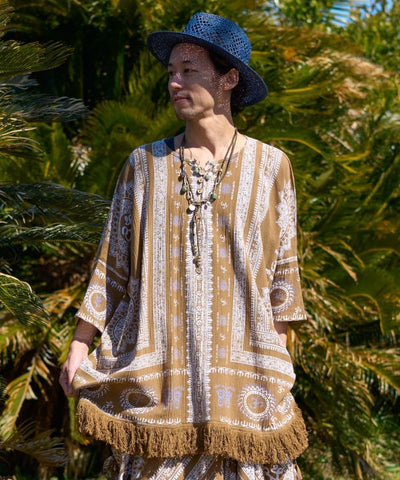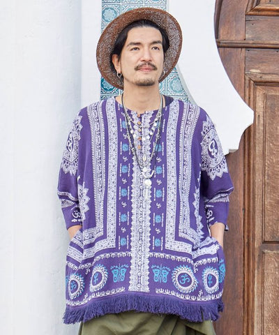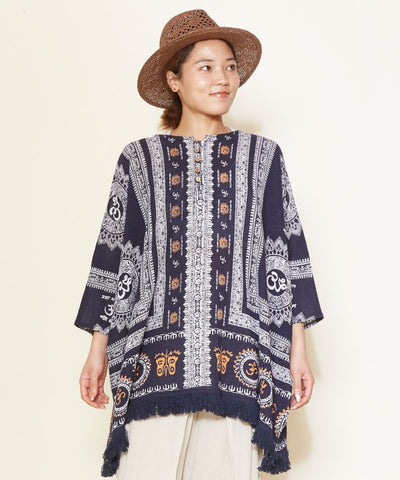 This big silhouette top is accentuated by the voluminous fringe at the hem. Exquisite size for both men and women. The comfortable crepe material does not cling to the skin even when sweating and is very comfortable to wear.