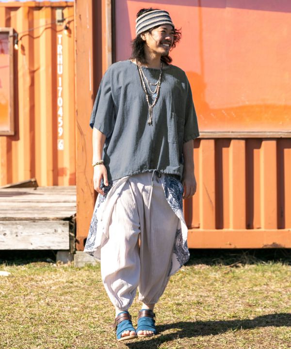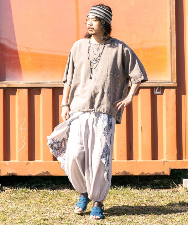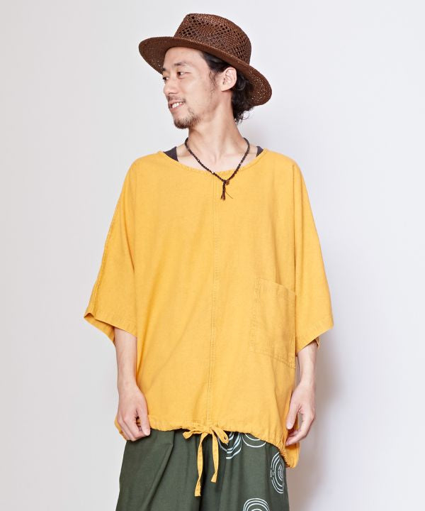 This men's top has a relaxed silhouette for a comfortable fit. Made of acid-washed textured Nepalese cotton, perfect for a rough, relaxed style. Size-less and unisex.