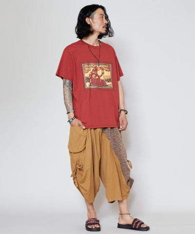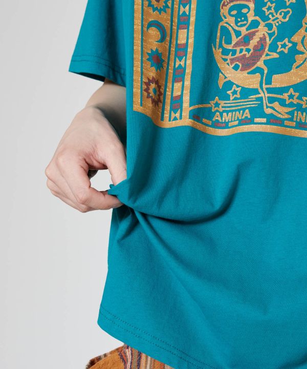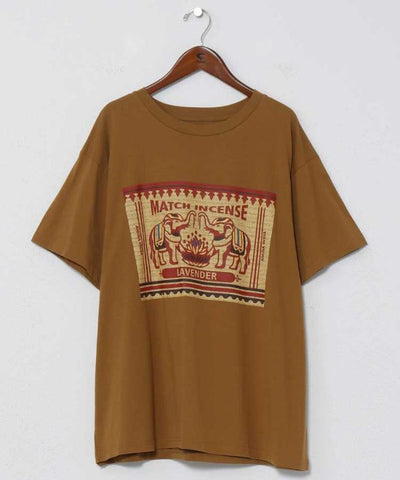 This vintage-inspired T-shirt features a unique patterned matchy-matchy print and one-point embroidery on the back. The T-shirt is lightweight and comfortable to the touch. Perfect for layering with shirts.