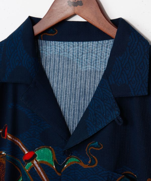 Part of the NIPPON ART series, this aloha shirt reinterprets ukiyo-e-inspired Japanese art into a modern design. Made with cotton dobby fabric featuring a subtle sashiko-like texture, it offers a comfortable and breathable fit. Available in popular motifs such as gashadokuro, cat, and rabbit, with new XL sizing. A refined ethnic-inspired shirt that blends traditional Japanese artistry with casual resort styling.