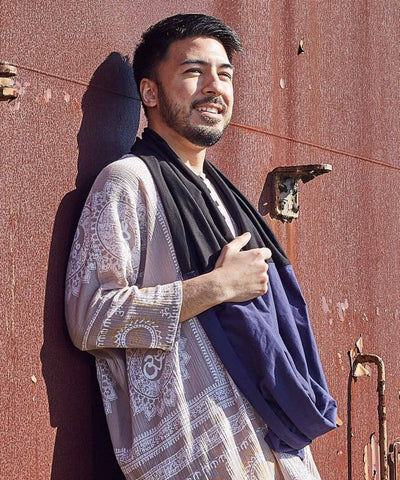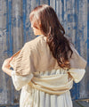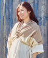 This 3-way snood is perfect for summer and can be worn as a snood bolero, or balaclava style, and is made of cool textured fabric. Accented with Nepalese bone buttons.