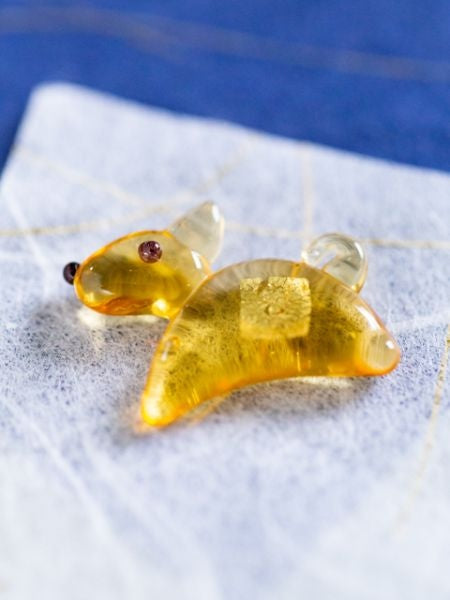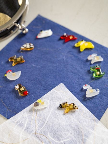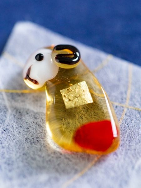 A small glass charm featuring traditional Kanazawa gold leaf and zodiac motifs, designed as a symbolic wallet talisman. Each piece reflects delicate craftsmanship and cultural heritage. Carry your zodiac sign as a personal charm for protection and good fortune, adding a subtle yet meaningful touch to your everyday essentials.